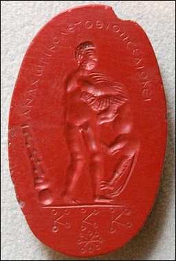 Pausanias wrote in “Description of Greece”, Book I: Attica (A.D. 160): The Oropians have near the temple a spring, which they call the Spring of Amphiaraus; they neither sacrifice into it nor are wont to use it for purifications or for lustral water. But when a man has been cured of a disease through a response the custom is to throw silver and coined gold into the spring, for by this way they say that Amphiaraus rose up after he had become a god. Iophon the Cnossian, a guide, produced responses in hexameter verse, saying that Amphiaraus gave them to the Argives who were sent against Thebes. These verses unrestrainedly appealed to popular taste. [Source: Pausanias, “Description of Greece,” with an English Translation by W.H.S. Jones, Litt.D. in 4 Volumes. Volume 1.Attica and Cornith, Cambridge, MA, Harvard University Press; London, William Heinemann Ltd., 1918]