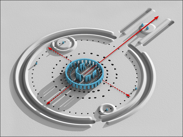 “The investigators used a battery of state-of-the-art instruments including magnetometers - essentially advanced metal detectors - ground-penetrating radar arrays, electromagnetic sensors and lasers. Among the new discoveries are massive prehistoric pits, some of which appear to form astronomical alignments. New information has also come to light about known monuments, including the Durrington Walls ''super-henge'' situated a short distance from Stonehenge. The survey showed that Durrington Walls, which has a circumference of nearly a mile, was once flanked by as many as 60 massive posts or stones up to three metres high. Among the many burial mounds is a striking long barrow 33 metres long within which signs of a massive timber building were found. Evidence suggests this was the site of complex rituals involving the dead, including the removal of flesh and limbs.
