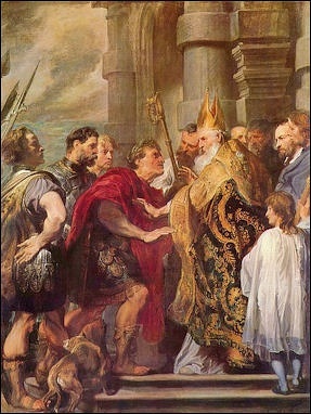 Another translation of “Theodosian Code XVI.i.2 reads: “It is our desire that all the various nation which are subject to our clemency and moderation, should continue to the profession of that religion which was delivered to the Romans by the divine Apostle Peter, as it has been preserved by faithful tradition and which is now professed by the Pontiff Damasus and by Peter, Bishop of Alexandria, a man of apostolic holiness. According to the apostolic teaching and the doctrine of the Gospel, let us believe in the one diety of the father, Son and Holy Spirit, in equal majesty and in a holy Trinity. We authorize the followers of this law to assume the title Catholic Christians; but as for the others, since in out judgment they are foolish madmen, we decree that the shall be branded with the ignominious name of heretics, and shall not presume to give their conventicles the name of churches. They will suffer in the first place the chastisement of divine condemnation an the second the punishment of out authority, in accordance with the will of heaven shall decide to inflict. [Source: Henry Bettenson, ed., Documents of the Christian Church, (London: Oxford University Press, 1943), p. 31]