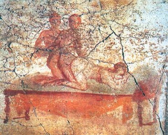Ben Gazur wrote in Listverse: In most societies, prostitution has been, if not illegal, then at least looked on as something deeply shameful. For the Romans, this was not the case. The Lupinar in the ruins of Pompeii gives us a peek into the world of the Roman brothel. Instead of hidden away in a dank alley, it proudly asserts the sort of business one could do inside. Graffiti tells people what to expect from the various women on offer. Once inside, several graphic images help those with less imagination or the illiterate understand just what they were buying.[Source Ben Gazur, Listverse, January 7, 2017]