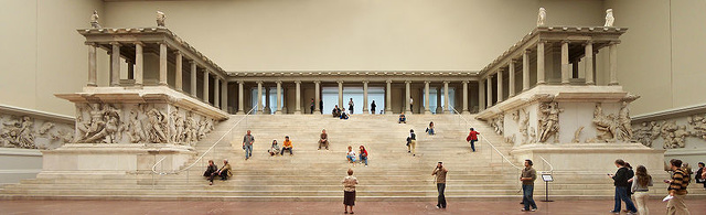 Pergamon Altar Greek temples were constructed to be admired from the outside. Ordinary people were often not allowed to go inside and if they were there usually wasn't much for them to see except for a large statue of the god the temple honored. On the outside statues were placed in niches. In a couple of instances the columns themselves were made into statues of women.