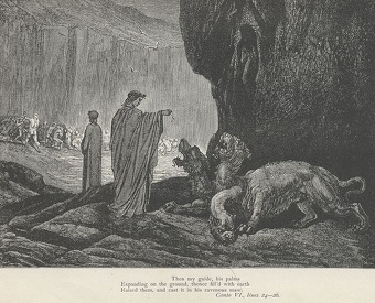 “And so he said that here he saw, by each opening of heaven and earth, the souls departing after judgement had been passed upon them, while, by the other pair of openings, there came up from the one in the earth souls full of squalor and dust, and from the second there came down from heaven a second procession of souls clean and pure and that those which arrived from time to time appeared to have come as it were from a long journey and gladly departed to the meadow and encamped there as at a festival, and acquaintances greeted one another, and those which came from the earth questioned the others about conditions up yonder, and those from heaven asked how it fared with those others.
