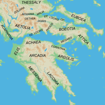 The highest mountain in Greece and the legendary home of the Greek gods, 9,570-foot-high Mt. Olympus, and the famous monasteries of Metora are located in Thessaly. Athens is positioned at the southern end of Central Greece. The Peloponnesus, where Sparta and Corinth are located, is to the west of Athens and seems as if it should be a big island.