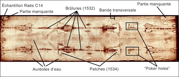 Some scientists have suggested that the carbon dating done in 1988 may have been affected by the 1532 fire or microorganism that had attached themselves to the cloth in recent centuries. Carbon dating works only on samples less than 5,730 year old. After a living things dies that ratio of Carbon 14 isotopes to Carbon 12 isotopes decays at a known rate. The measurement of this ratio with a high energy mass spectrometer reveals the date.