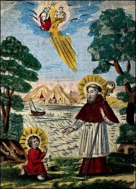 Augustine with the boy who tries to empty the sea into a hole on the beach