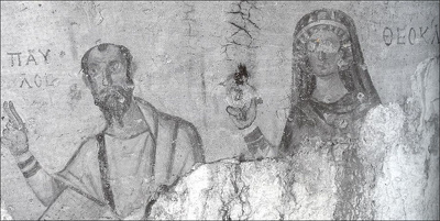 Elizabeth Clark of Duke University told PBS: “Thecla is a literary character of probably second century Christianity who comes to be thought of as an actual historical character by the fourth century. Thecla appears in a document called The Acts of Paul and Thecla which is one of the many sets of acts that came to be labeled the apocryphal acts.... Thecla's represented as being an aristocratic young woman who hears the teaching of Paul, and upon hearing the message of Paul, which is construed in this text... as a message of sexual renunciation, she gives up her fiancee and wants to go off and follow Paul on his missionary trips. Her family is very much opposed to this. Her mother goes so far as to try to have her daughter burned at the stake to prevent her from carrying out this wish, but after many lively adventures including baptizing herself in a pool of seals, Thecla does manage to become a missionary and lives to a ripe old age preaching and teaching the gospel. So this is one of several stories in the apocryphal acts where women are represented as giving up riches and particularly marriage and sexual activity for the sake of following the teachings of the Apostles.... [Source: Elizabeth Clark, John Carlisle Kilgo Professor of Religion and Director of the Graduate Program in Religion Duke University, Frontline, PBS, April 1998 ]
