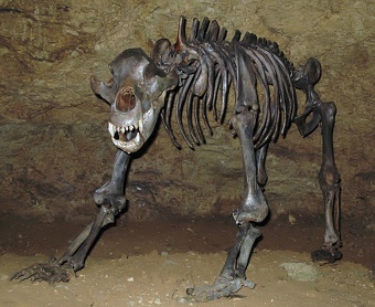 Death during hibernation was a common end for cave bears, mainly befalling specimens that failed ecologically during the summer season through inexperience, sickness or old age. Some cave bear bones show signs of numerous ailments, including spinal fusion, bone tumors, cavities, tooth resorption, necrosis (particularly in younger specimens), osteomyelitis, periostitis, rickets and kidney stones. Male cave bear skeletons have been found with broken bacula, probably due to fighting during the breeding season. [Source: Wikipedia]