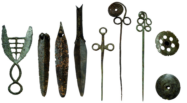 In 2022, Archaeology magazine reported: Scholars once believed that a type of copper-alloy dagger commonly found in burials across Bronze Age Europe was ceremonial rather than functional. It was thought that these blades were included in graves to symbolize the warrior status of the dead. However, a new study employing cutting-edge technology detected the presence of muscle fibers and collagen from animal bone on daggers found in the village of Pragatto. This suggests that the knives were used to butcher and process animal carcasses and were not solely symbolic. [Source: Archaeology magazine, July 2022]