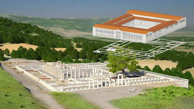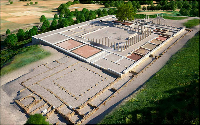 Archaeologists began restoration work on the Palace of Aigai in 2007. The 16-year-long restoration project involved excavating the ruins, preserving the findings and piecing back together any surviving fragments. Missing sections were replicated and replaced. In total, the project cost about $22.3 million and was partially financed by the European Union. The full site was opened to the public in January 2024 Vergina is about 490 kilometers (300 miles) northwest of Athens.