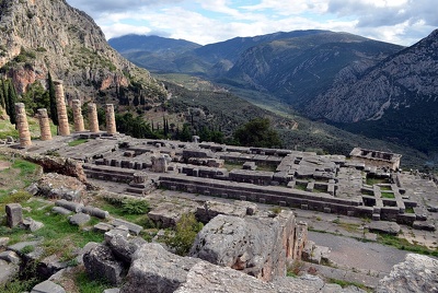Delphi was the most famous and frequently visited oracle in the ancient world. Its location was considered to be the geographic center of the earth. The oracle's words were said to have been inspired by Apollo and delivered by a local female elder. She was called the Pythia in honor of Pytho, the snake Apollo killed.
