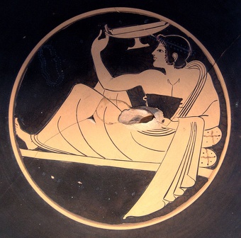 Megan Gannon wrote in Live Science, “At Greek symposia, elite men, young and old, reclined on cushioned couches that lined the walls of the andron, the men’s quarters of a household. They had lively conversations and recited poetry. They were entertained by dancers, flute girls and courtesans. They got drunk on wine, and in the name of competition, they hurled their dregs at a target in the center of the room to win prizes like eggs, pastries and sexual favors. Slaves cleaned up the mess. [Source: Megan Gannon, Live Science, January 14, 2015]